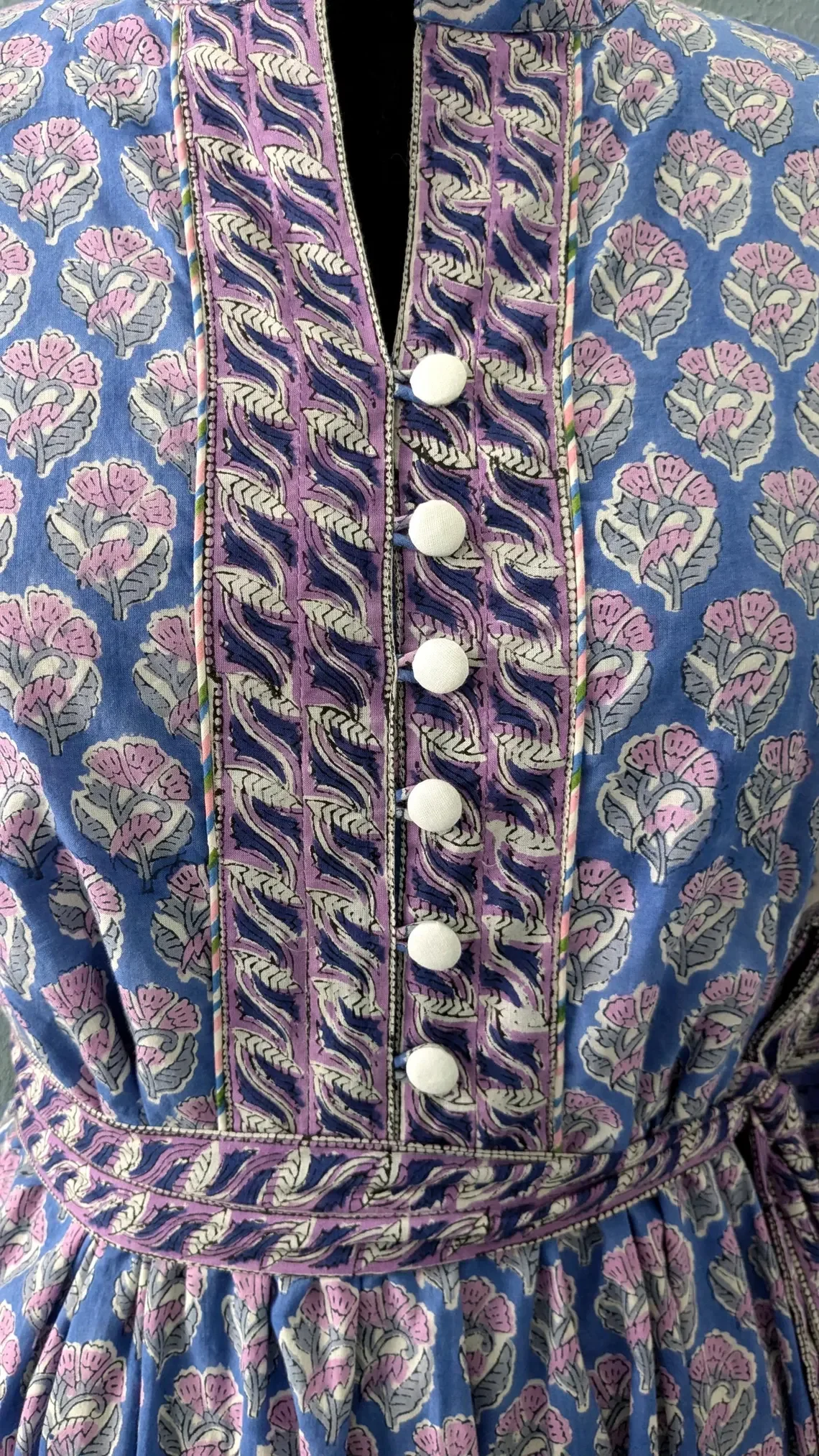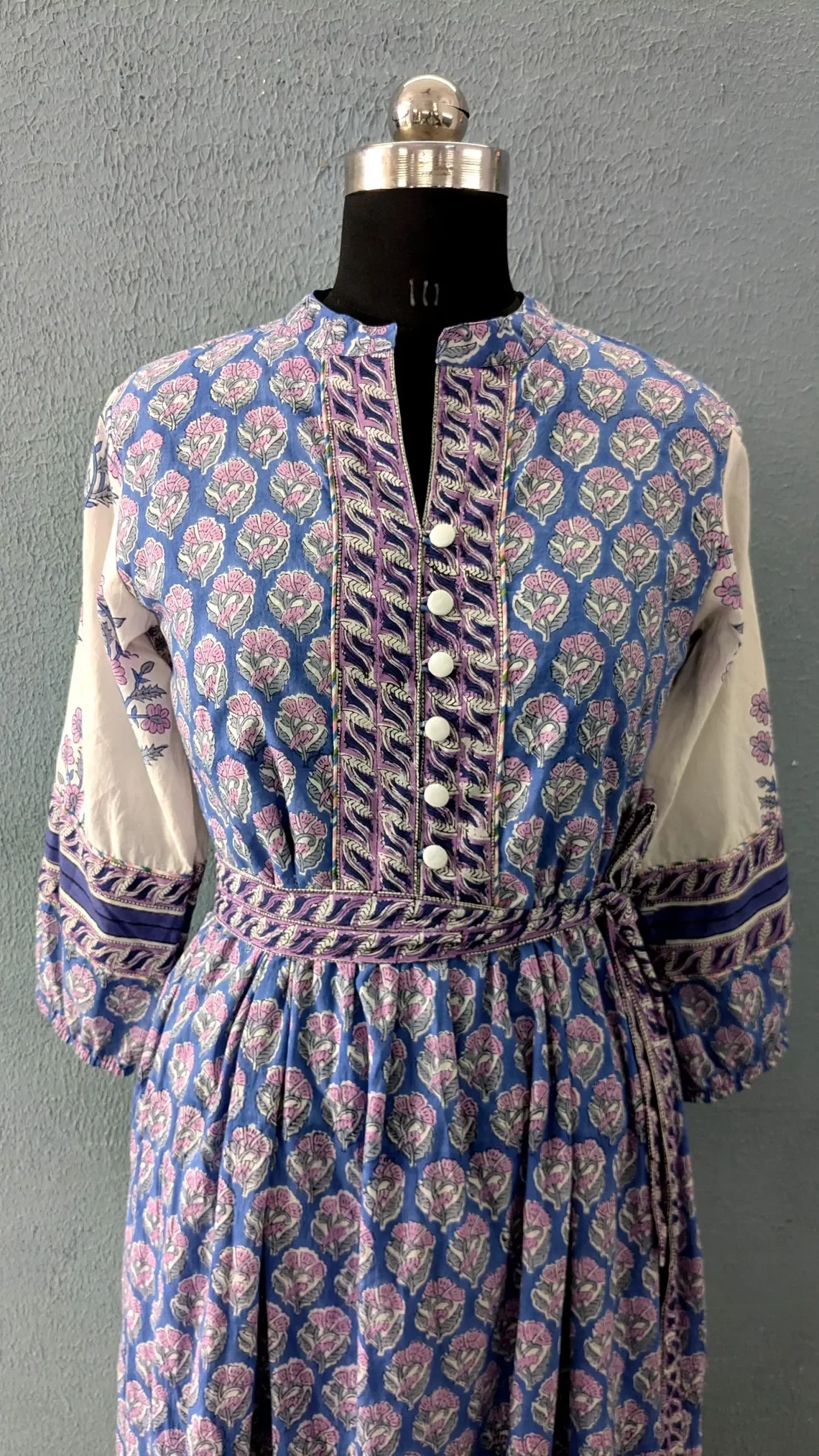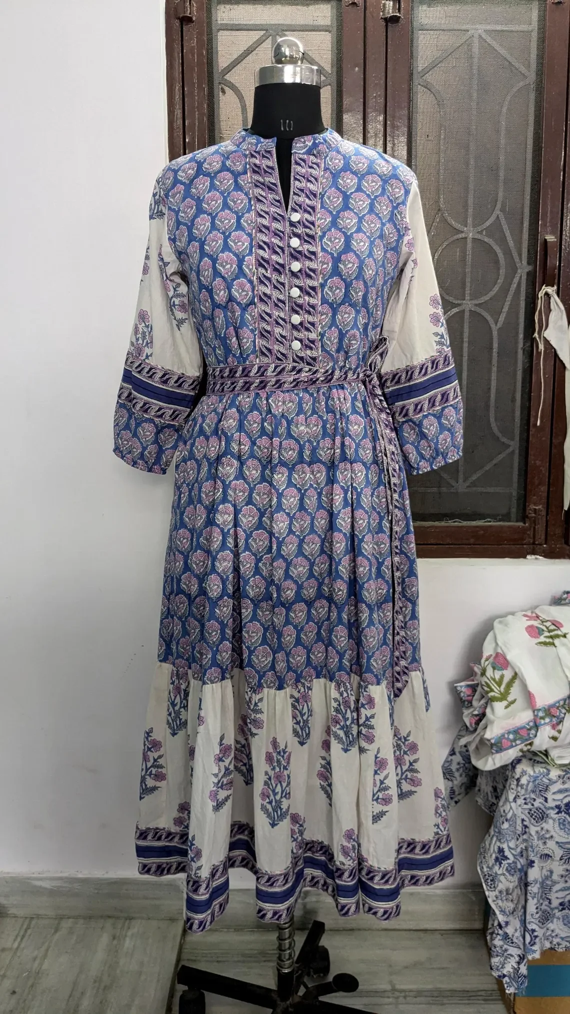 Summer Maxi Midi Dress Hand Block Printed Cotton Floral Print Woven Breathable And Ec-Friendly Long Sleeve V-neck Maxi Dress